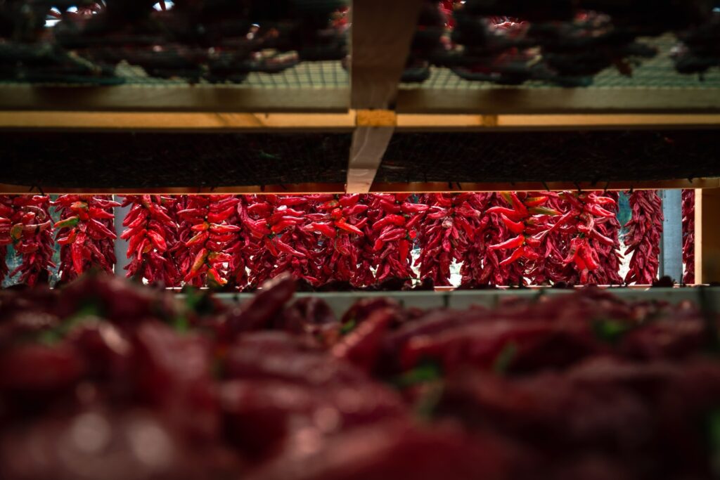Questa lavorazione tradizionale lenta e naturale è la chiave per ottenere un prodotto ricco di gusto e di carattere, profondamente diverso dai peperoni trattati industrialmente: è un sapore legato alla terra e alle stagioni, frutto di tempo, pazienza e rispetto per la materia prima.