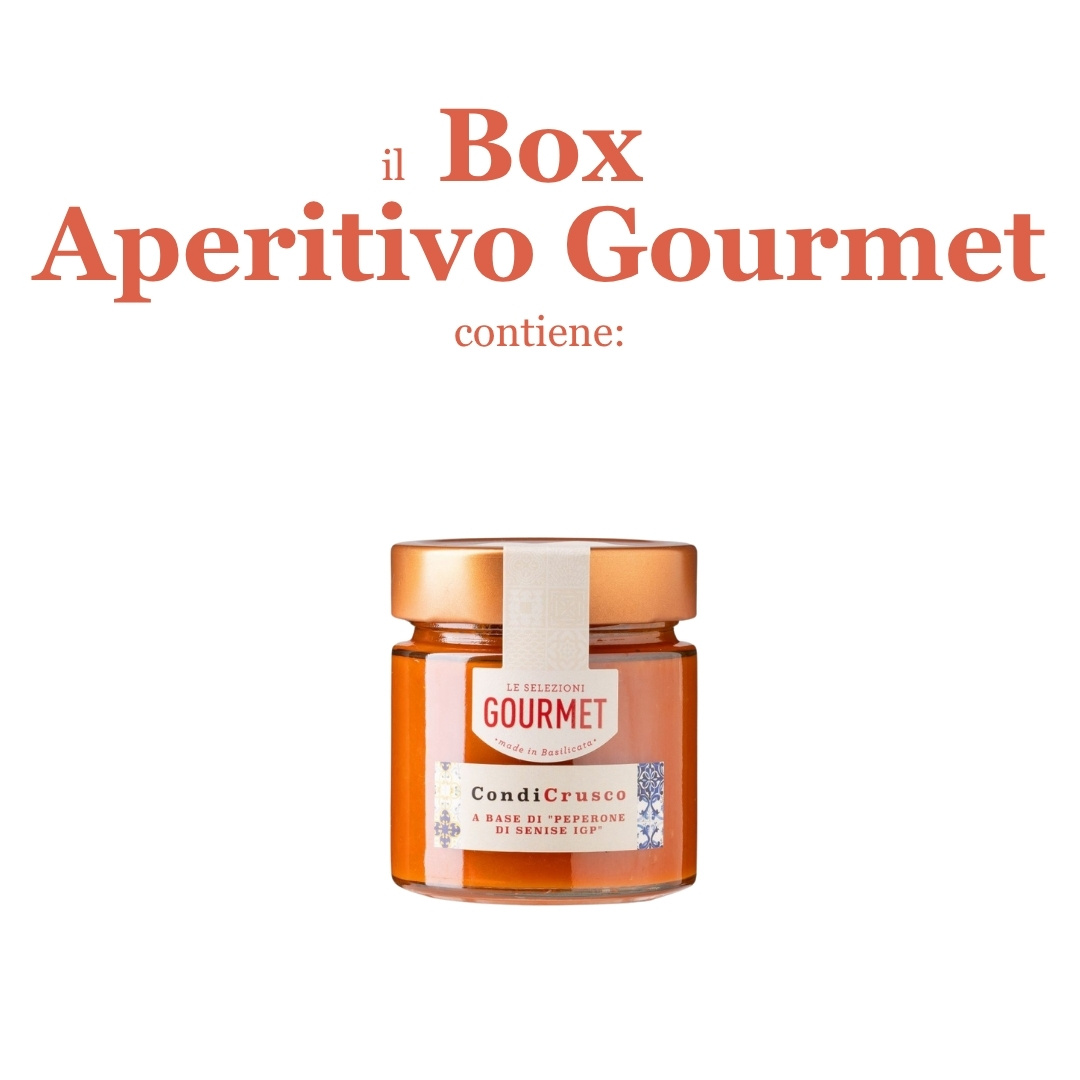 Box Aperitivo Crusco Gourmet Lucano con Peperoni Cruschi, taralli al peperone crusco, Funghi lucani, Condicrusco spalmabile e chips di crusco.